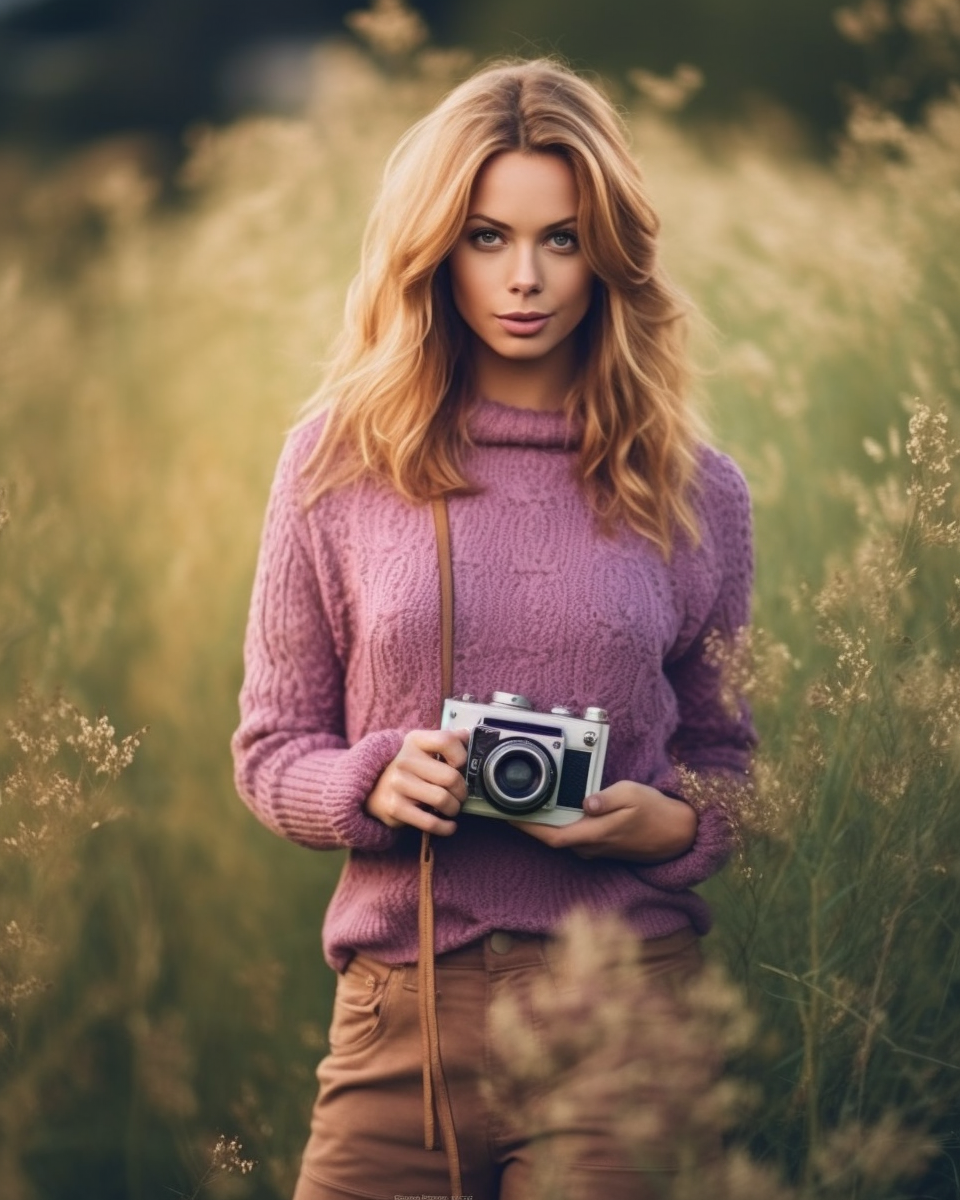 A WOMAN IN A SWEATER AND JEANS IS